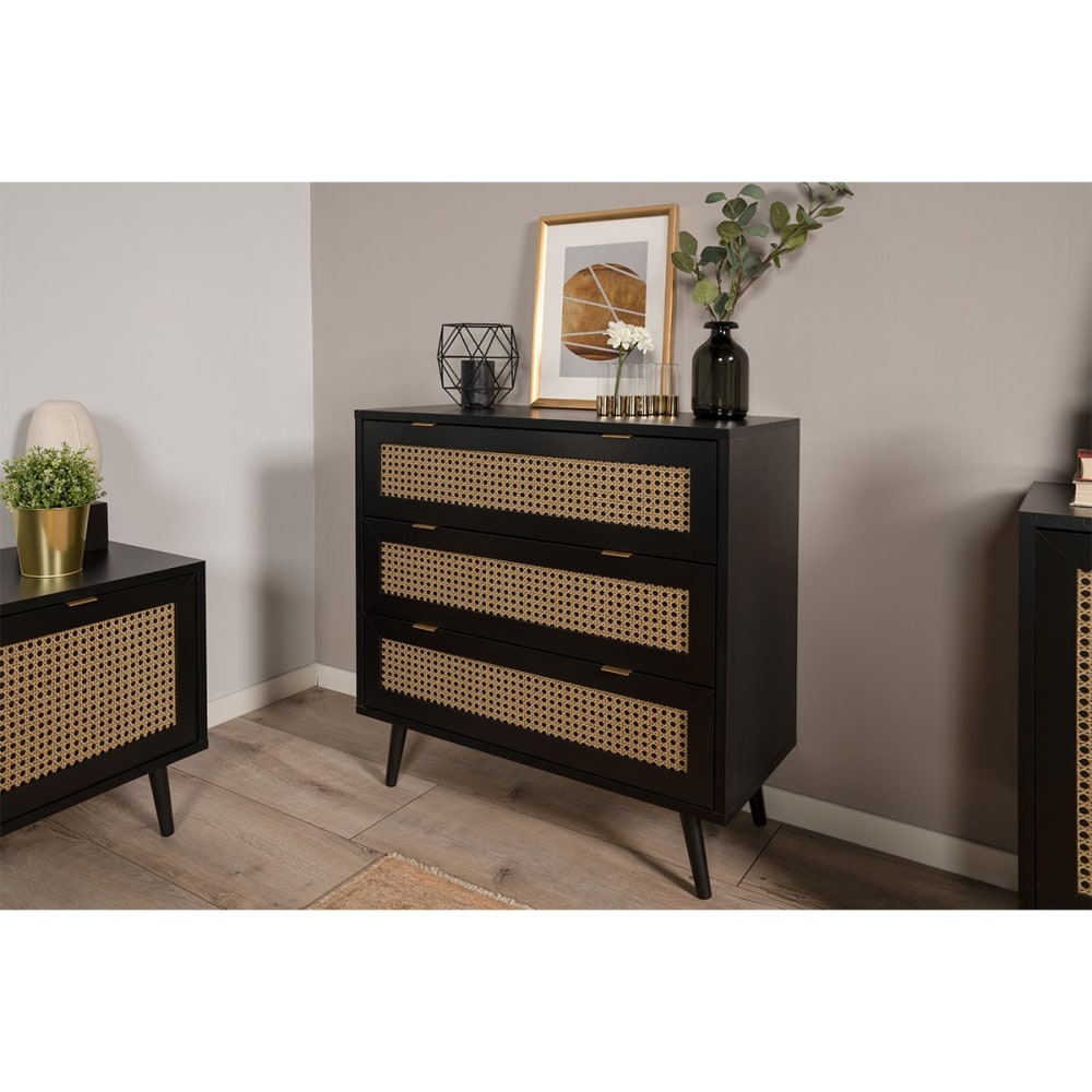Kommode mit 3 Schubladen in Rohrgeflecht Druck – Schwarz von Calicosy