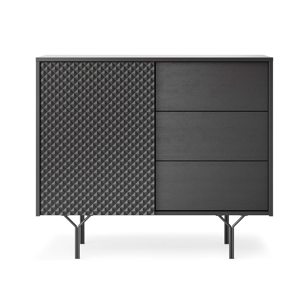 Eine zeitlos schöne und praktische Kommode im modernen fühlbaren 3D-Style in schwarz.Die Kommode lässt sich hervorragend integrieren und bietet Ihnen viel Stauraum.