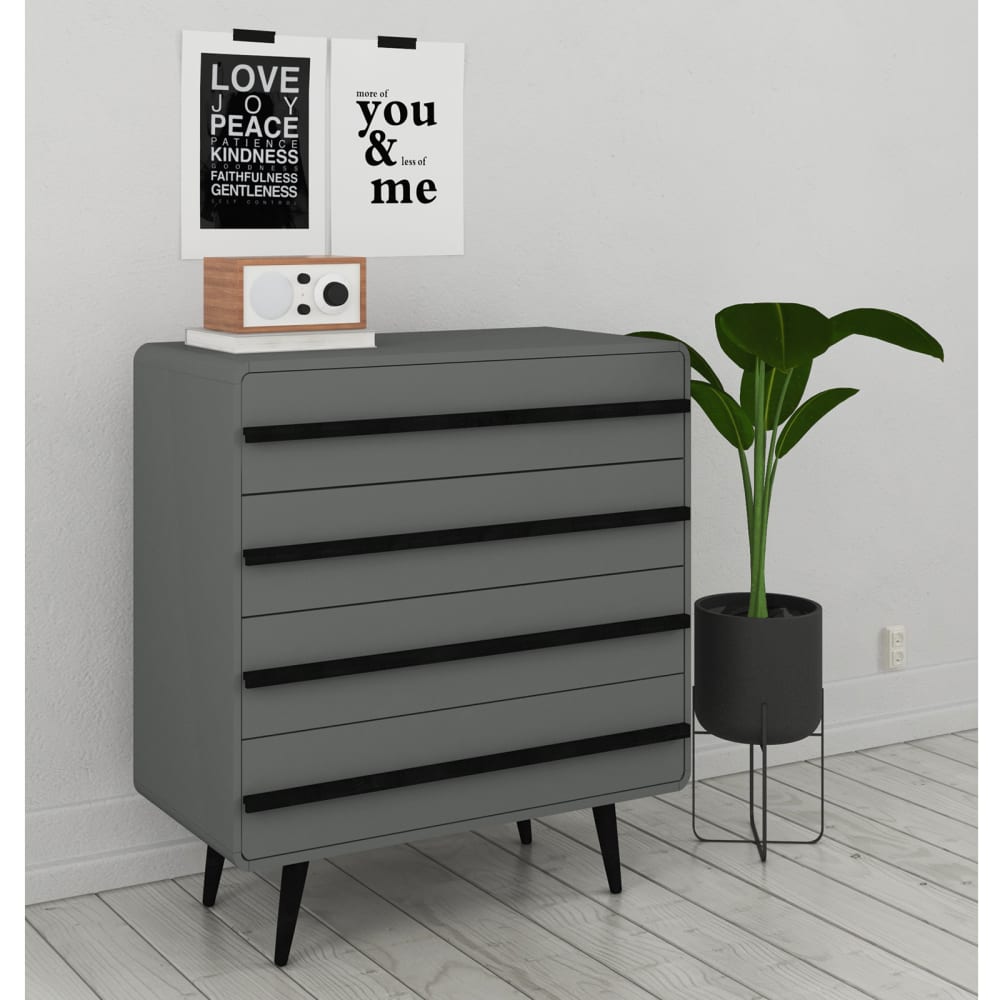Kommode mit 4 Schubladen, grau/schwarz von Loft24