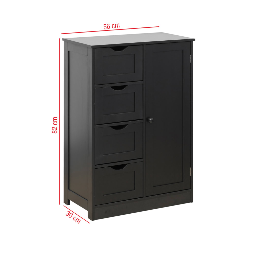 Kommode mit 4 Schubladen und 1 Tür aus Holz, schwarz von Mobili Rebecca