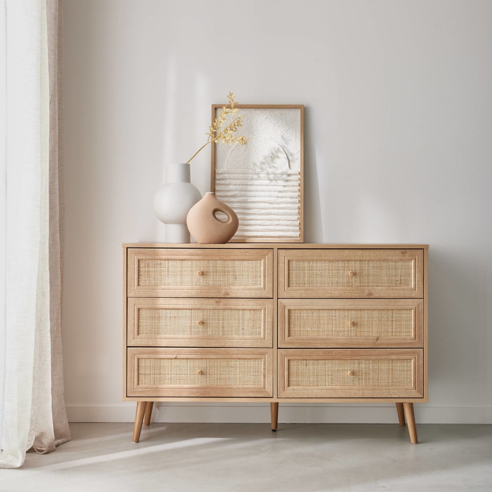 Kommode mit Holzeffekt und Rohrgeflecht, 6 Schubladen von sweeek