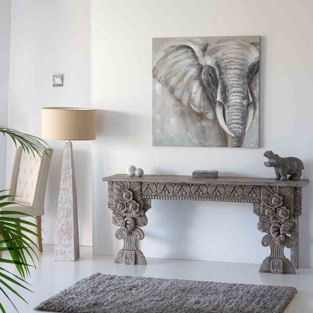 Konsole aus geschnitztem Holz, handgefertigt, 180x38x78, braun von Wanderlust deco