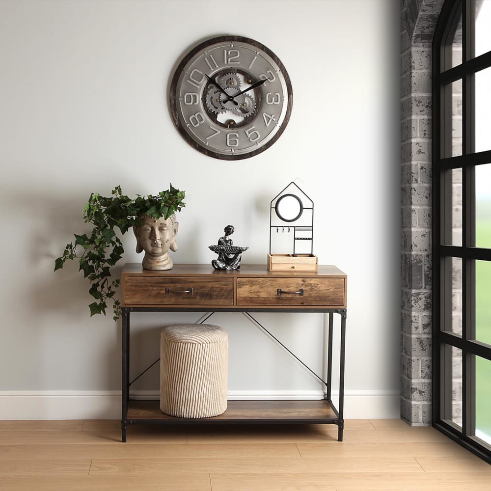 Konsole mit 2 Schubladen aus Spanplatte in Holzoptik und Metall, braun von Versa Home