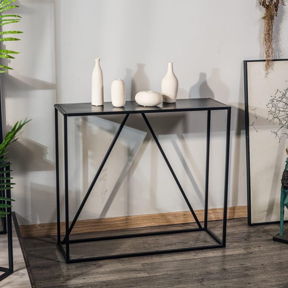 Der Konsolentisch SOLNA zeigt sich als perfekte Verbindung aus zeitloser Eleganz und Moderne! Sein von Industriemöbeln der 50er Jahre inspiriertes Design lässt ihn mühelos Platz im Flur, im Eingangsbereich oder in Ihrem Wohnzimmer finden. Mit seiner großen Ablagefläche aus Metall dem edlen Material, das unsere Interieurs gerade im Sturm zurückerobert eignet er sich ideal, um Ihre Kerzen und Pflanzen oder andere Deko-Objekte apart in Szene zu setzen. Produktgröße = 90 x 30 x 80cm / Produkttgewicht = 4,5 kg / Gesamtpaketgewicht = 6 kg / Produkt muss zusammengebaut werden = Richtig / Stapelbares Produkt = Falsch /