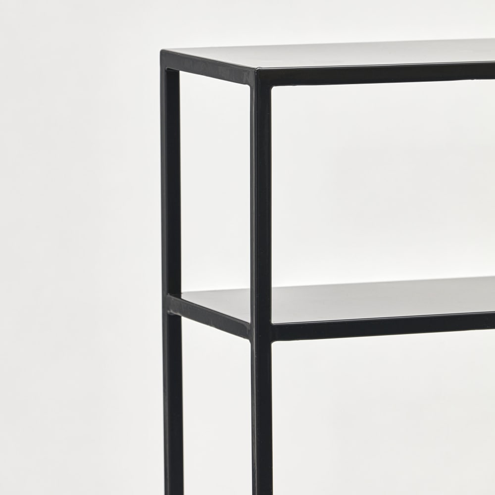 Wenn Sie Ihr Wohnzimmer, Ihr Schlafzimmer oder einen anderen Raum in Ihrem Haus mit einem Möbelstück ausstatten möchten, das sowohl designorientiert als auch praktisch ist, sollten Sie sich für die Konsole Fari entscheiden. Diese Konsole aus Stahl in der Farbe Schwarz ist ein echtes Designerstück und verleiht dem Raum, in dem Sie sie aufstellen möchten, eine trendige und hochwertige Deko-Note. Ihre klaren Linien sorgen dafür, dass sie den Raum nicht mit ihrer Präsenz überfüllt und ihr ein Gefühl von Leichtigkeit verleiht. Außerdem ist er mit seinen zwei Ebenen sehr praktisch und pflegeleicht: Ein feuchtes Tuch genügt. .