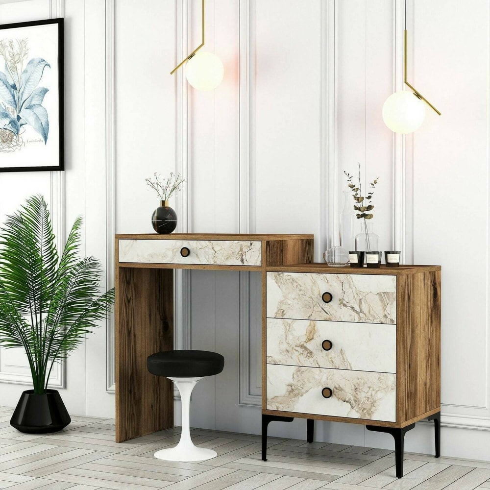 Konsolentisch Holzeffekt walnuss, weiß 124×40 cm von Dmora