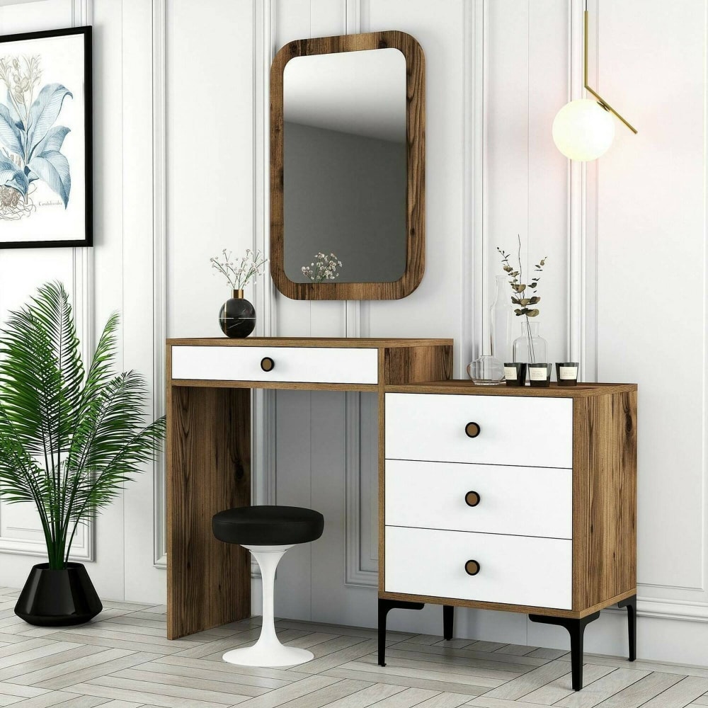 Konsolentisch Holzeffekt walnuss, weiß 124×40 cm von Dmora