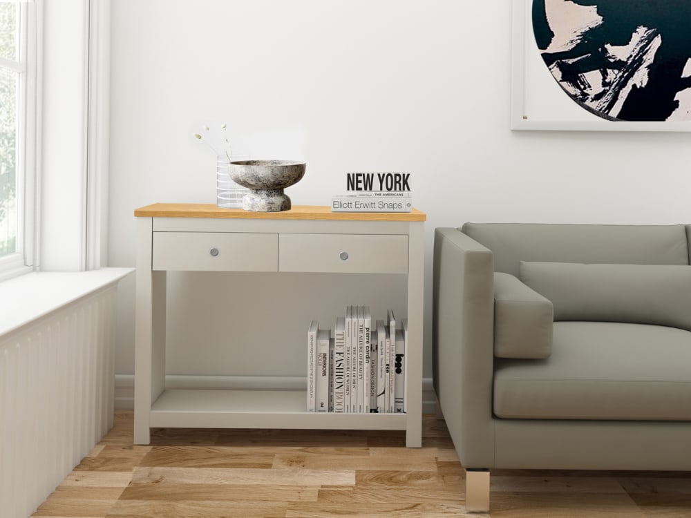 Ein stilvoller Konsolentisch aus laminierter Spanplatte im modernen Landhausstil.