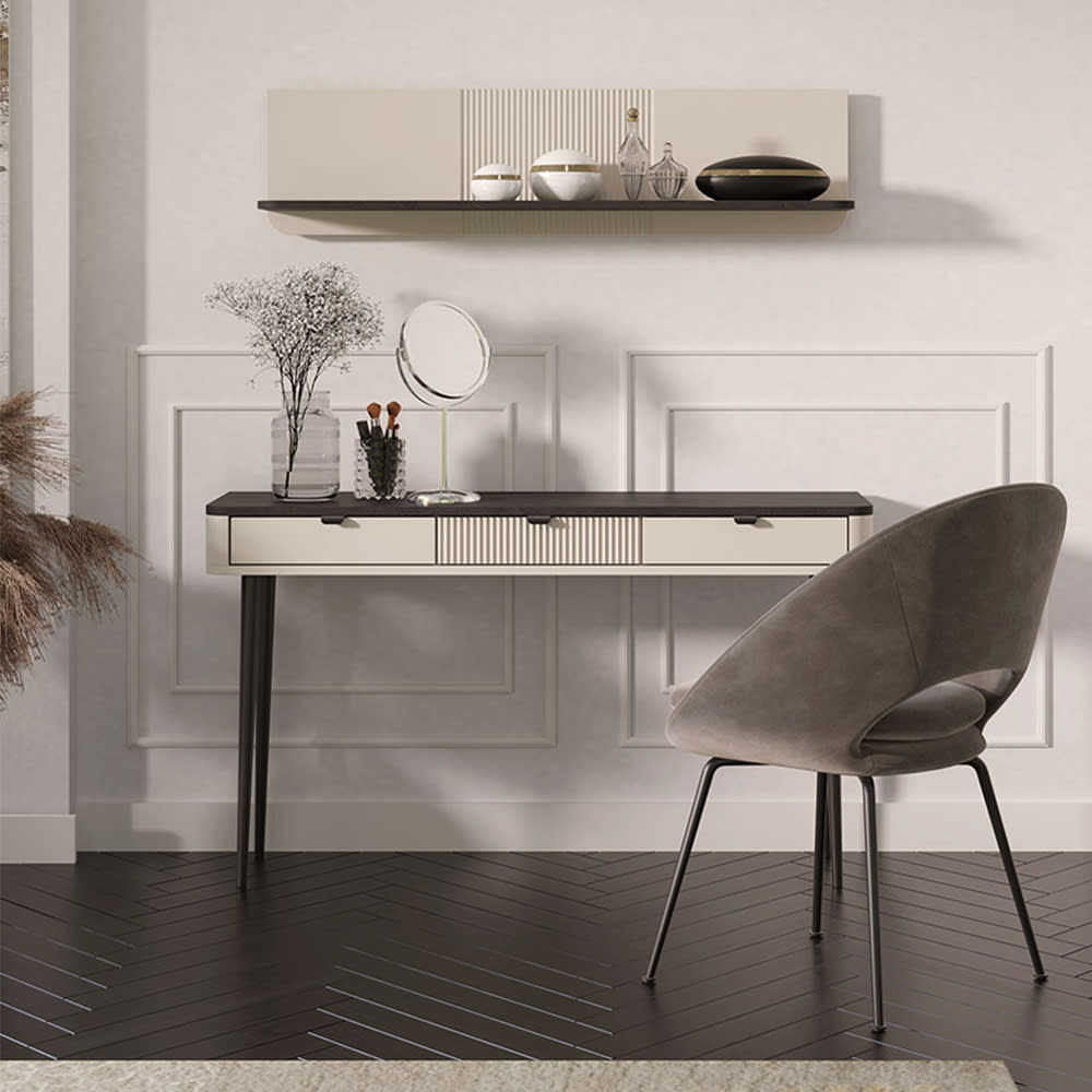 Konsolentisch mit Schubladen aus MDF, 130x40x82cm, Kaschmir / Walnuss von Feldmann-Wohnen