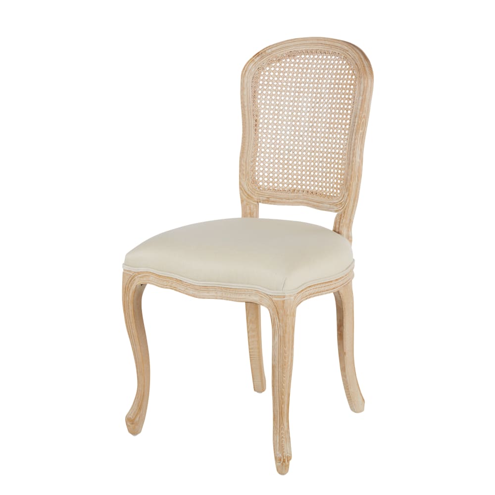 Leinenfarbener Stuhl mit Rattan-Geflecht von Maisons du Monde