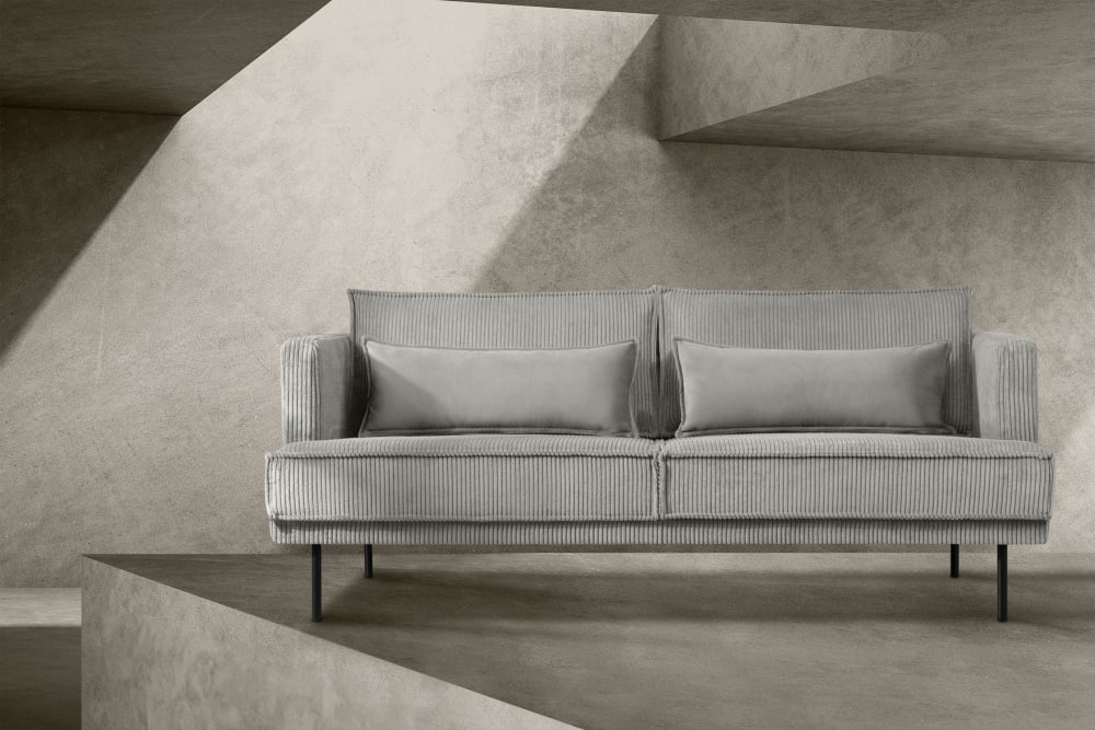 Loftsofa, Metallbeine, 2 Kissen inklusive, Velours, hellgrau, von KONSIMO