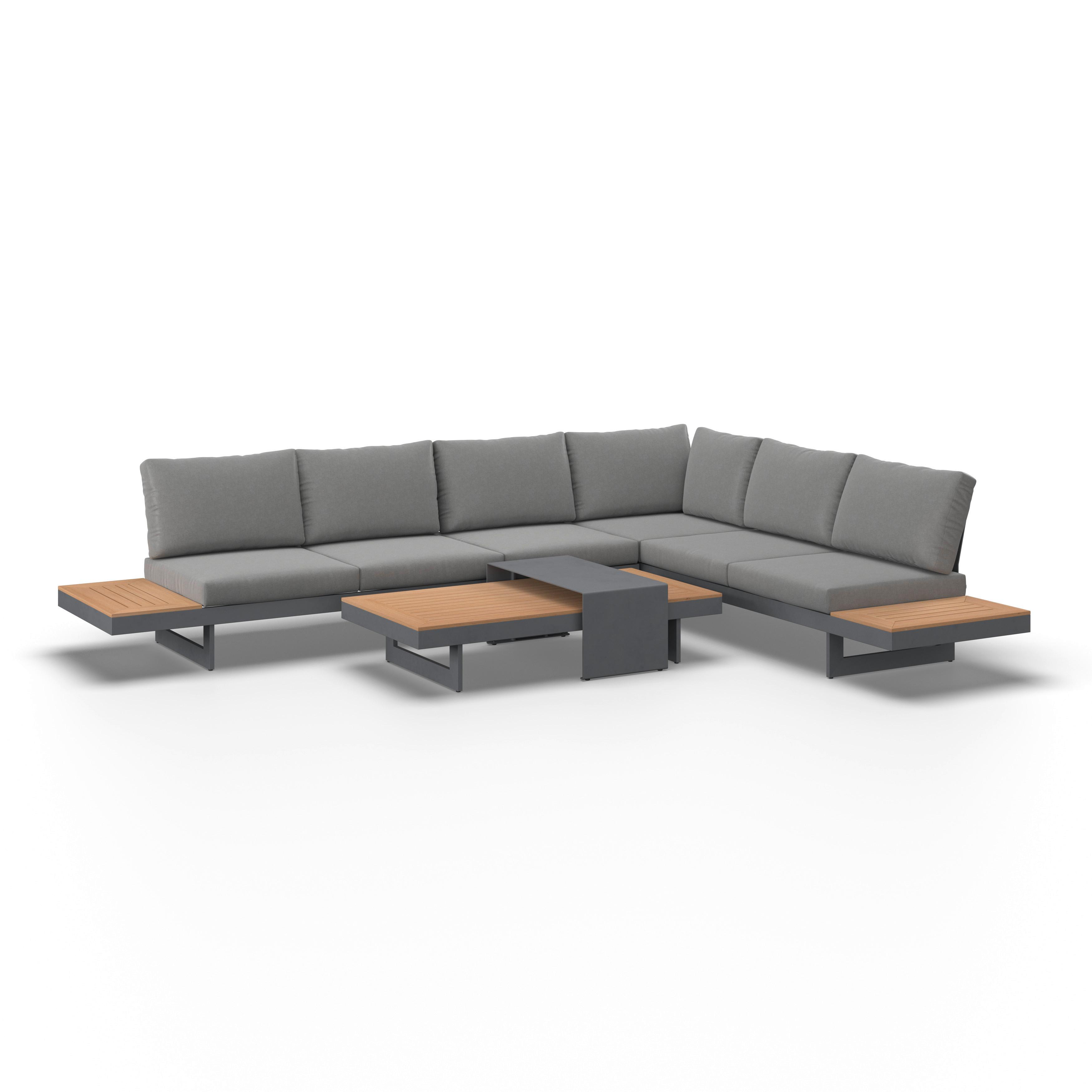 Die 4-teilige Loungegarnitur Sabrina vereint modernes Design mit höchstem Sitzkomfort. Dank des pulverbeschichteten Aluminiumgestells und der hochwertigen Polywood®-Tischplatten ist dieses Set nicht nur optisch ansprechend, sondern auch wetterbeständig und pflegeleicht. Die großzügigen Sitzbänke mit abnehmbaren Bezügen in Grau und komfortablen Sitz- und Rückenkissen in Grau laden zum entspannten Verweilen im Garten oder auf der Terrasse ein. Inklusive praktischer Abdeckung zum Schutz vor Witterungseinflüssen. Die Loungegarnitur Sabrina bietet maximalen Komfort und stilvolle Eleganz für Ihren Außenbereich – der perfekte Ort für gemütliche Stunden im Freien! HINWEIS