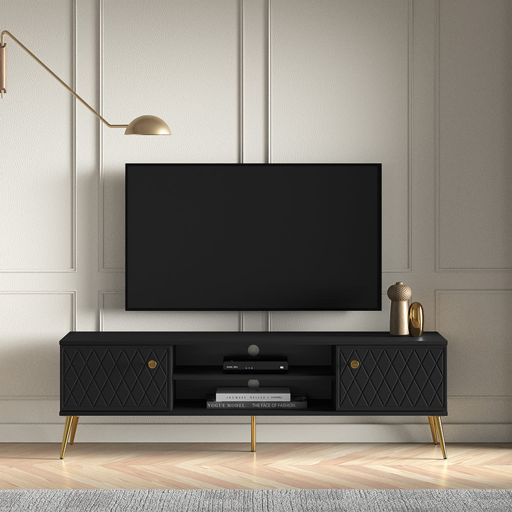 Lowboard, 3D-Karo-Muster aus MDF, 160x40x49cm, Schwarz / Gold von Feldmann-Wohnen