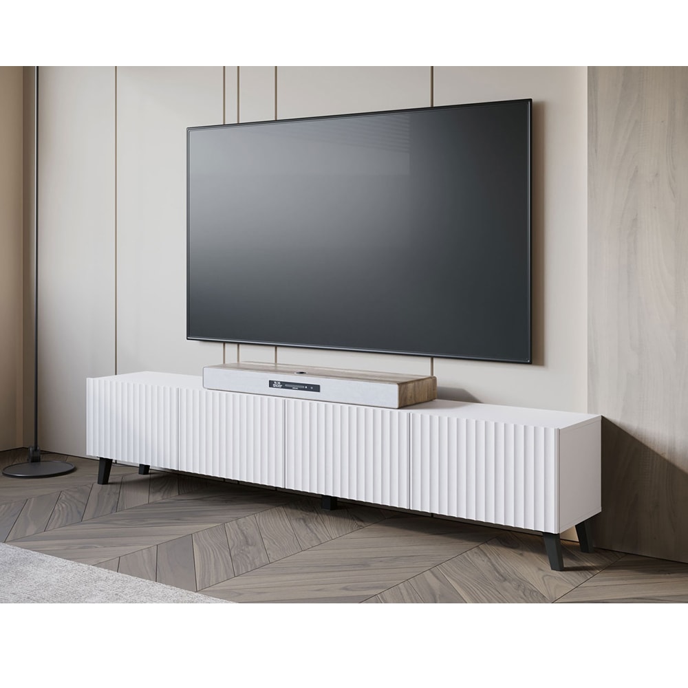 Lowboard mit 3D-Muster aus MDF, Weiß Gerillt, 190x32x39cm von Feldmann-Wohnen