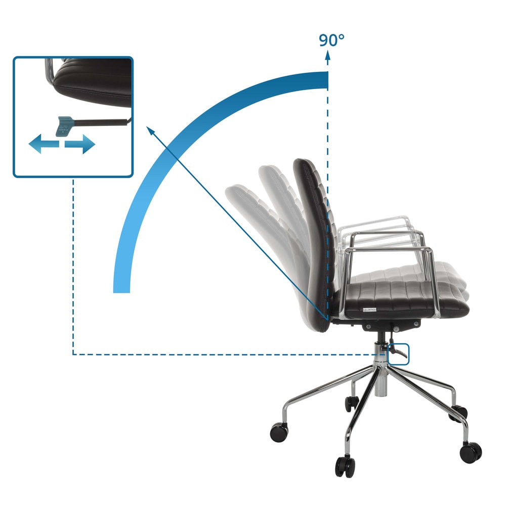 Der elegante Chefsessel VEMONA 30 vereint stilvolles Design mit herausragendem Komfort. Ausgestattet mit einer hochwertigen Synchronmechanik, die über einen automatischen Gegendruck verfügt, passt sich dieser Stuhl optimal an Ihr Körpergewicht an. Das langlebige EPU-Kunstleder zeichnet sich durch seine besondere Weichheit aus und sorgt dafür, dass Sie auch über längere Zeiträume hinweg bequem sitzen können. Die elegant geschwungenen Armlehnen bieten zusätzlichen Komfort und runden das ansprechende Gesamtbild ab. Ein verchromtes Aluminium-Fußkreuz verleiht dem Stuhl nicht nur Stabilität, sondern auch eine moderne Note. Die lastabhängig gebremsten Multifunktionsrollen ermöglichen eine mühelose Bewegung auf verschiedenen Bodenbelägen und sorgen dafür, dass der Stuhl immer an Ort und Stelle bleibt, wenn Sie ihn nicht benötigen. Mit dem VEMONA 30 entscheiden Sie sich für einen Designerstuhl, der sowohl in modernen Büros als auch in klassischen Arbeitsumgebungen eine hervorragende Figur macht.