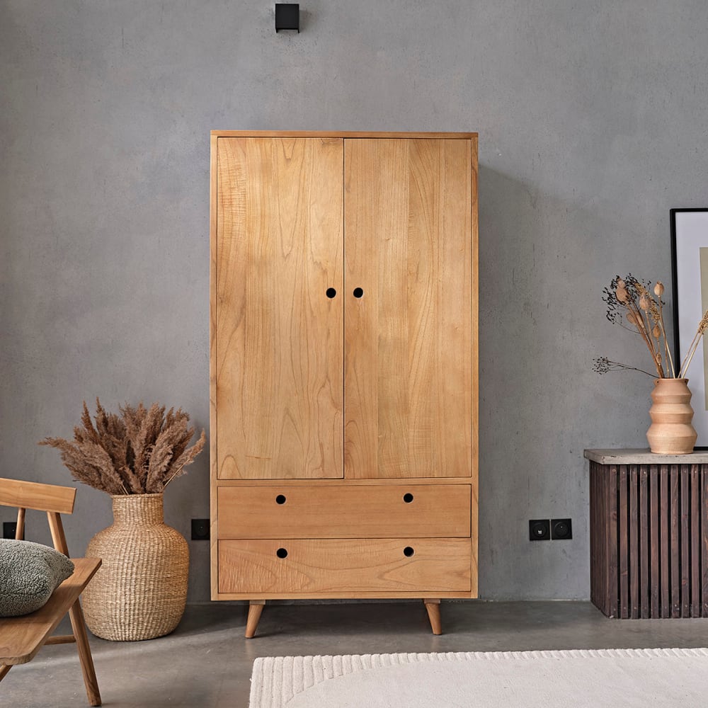 Massiver Mindi-Schrank 190 100x190x100cm Holz Beige BERAH GETAH Möbel Schlafzimmermöbel Schränke