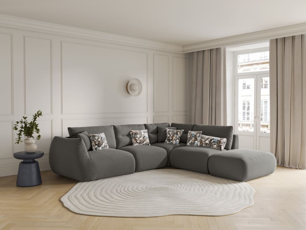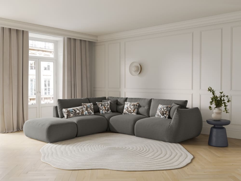 7-Sitzer linkes modulares Ecksofa aus strukturiertem Stoff dunkelgrau 290x90x297cm Stoff Grau CXL by Christian Lacroix Sofas und Sessel Sofas Ecksofas