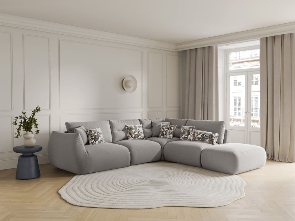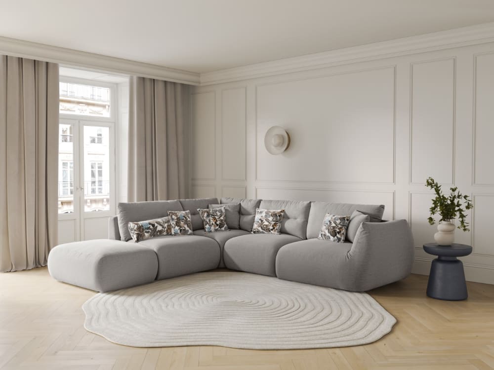 7-Sitzer linkes modulares Ecksofa aus strukturiertem Stoff hellgrau 290x90x297cm Stoff Grau CXL by Christian Lacroix Sofas und Sessel Sofas Ecksofas