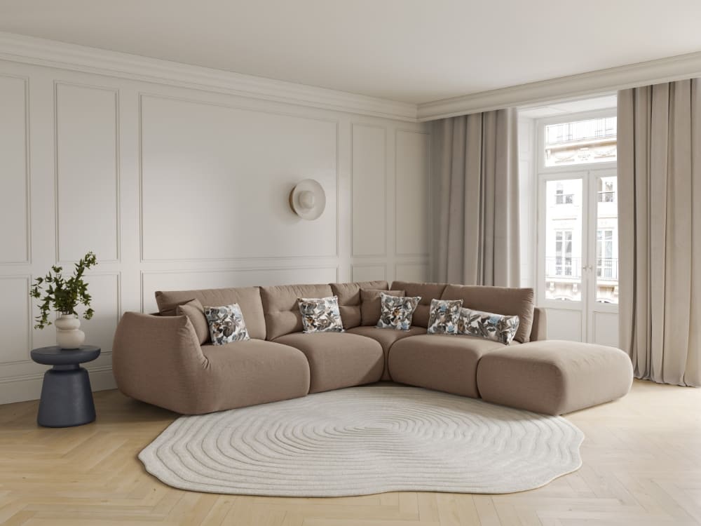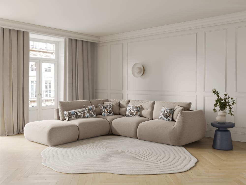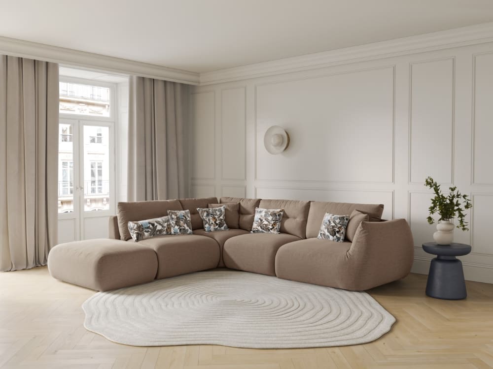 7-Sitzer linkes modulares Ecksofa aus strukturiertem Stoff sandfarben 290x90x297cm Stoff Braun CXL by Christian Lacroix Sofas und Sessel Sofas Ecksofas