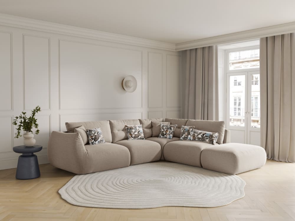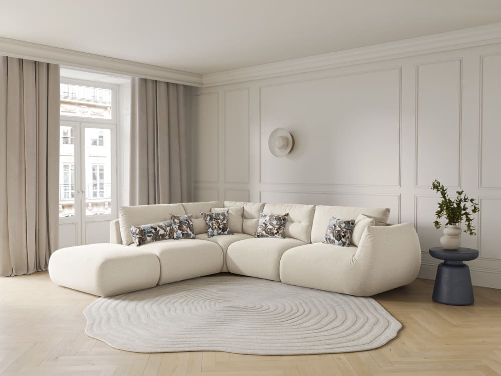 7-Sitzer linkes modulares Ecksofa aus strukturiertem Stoff elfenbein 290x90x297cm Stoff Beige CXL by Christian Lacroix Sofas und Sessel Sofas Ecksofas
