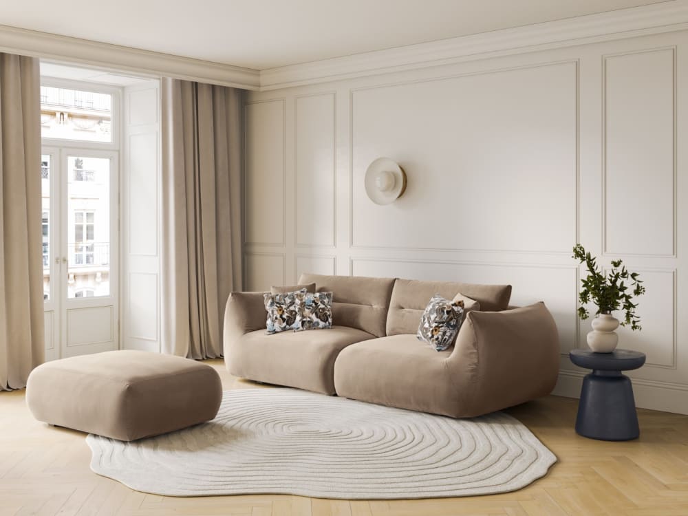 Pouf aus Samt mandelbeige 85x43x100cm Samt Beige CXL by Christian Lacroix Sofas und Sessel Sessel, Poufs und Fußbänke Sitzsäcke