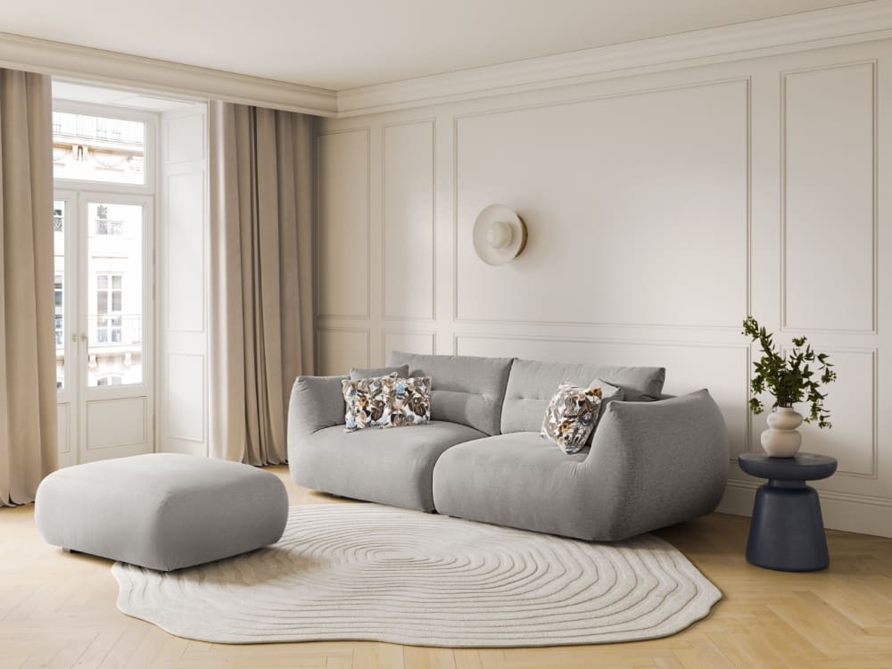 Pouf aus strukturiertem Stoff hellgrau 85x43x100cm Stoff Grau CXL by Christian Lacroix Sofas und Sessel Sessel, Poufs und Fußbänke Sitzsäcke