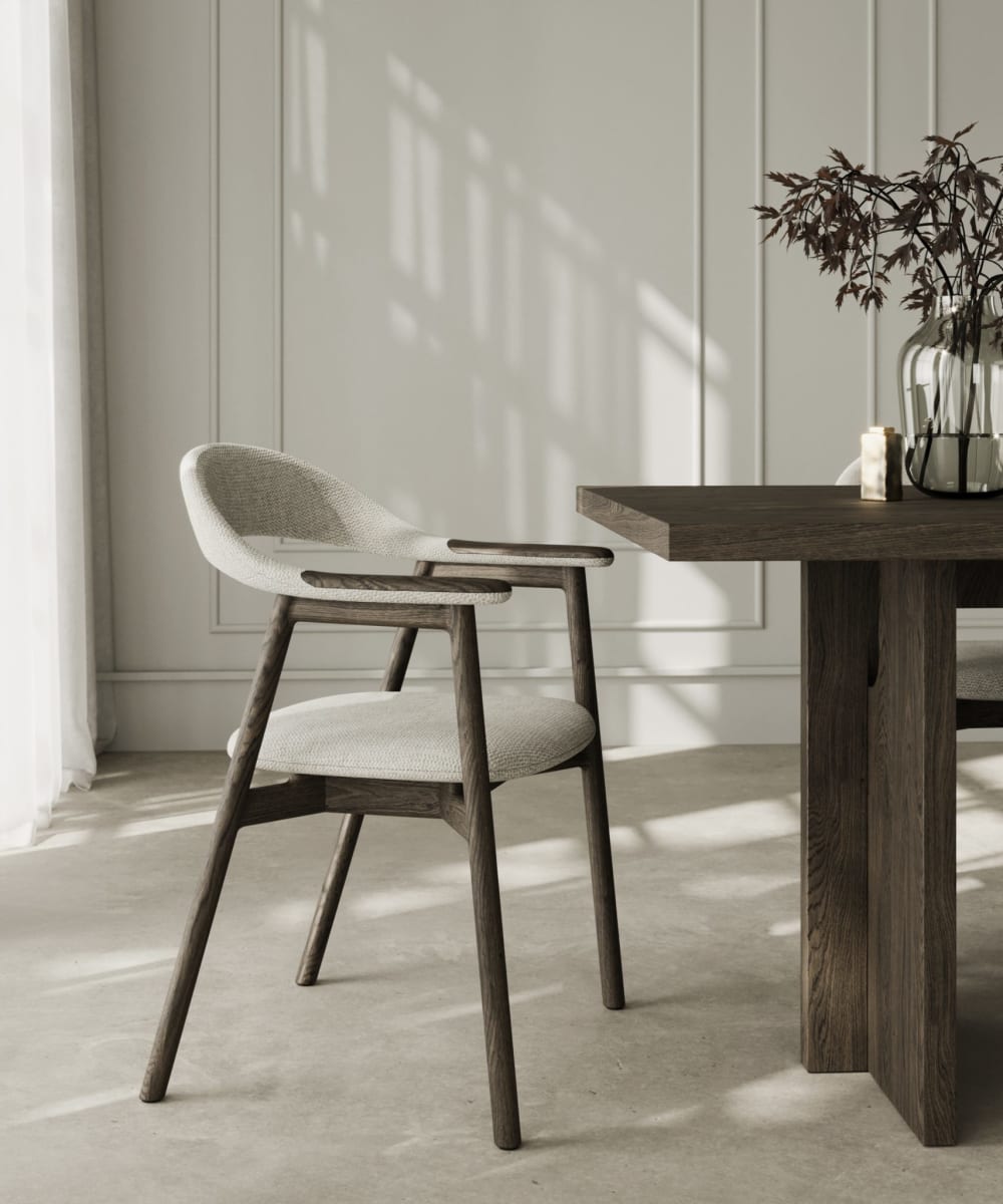 Stuhl aus Eiche, beiger Sitz 59x77x58cm Holz Beige WOODEK Möbel Esszimmermöbel Stühle