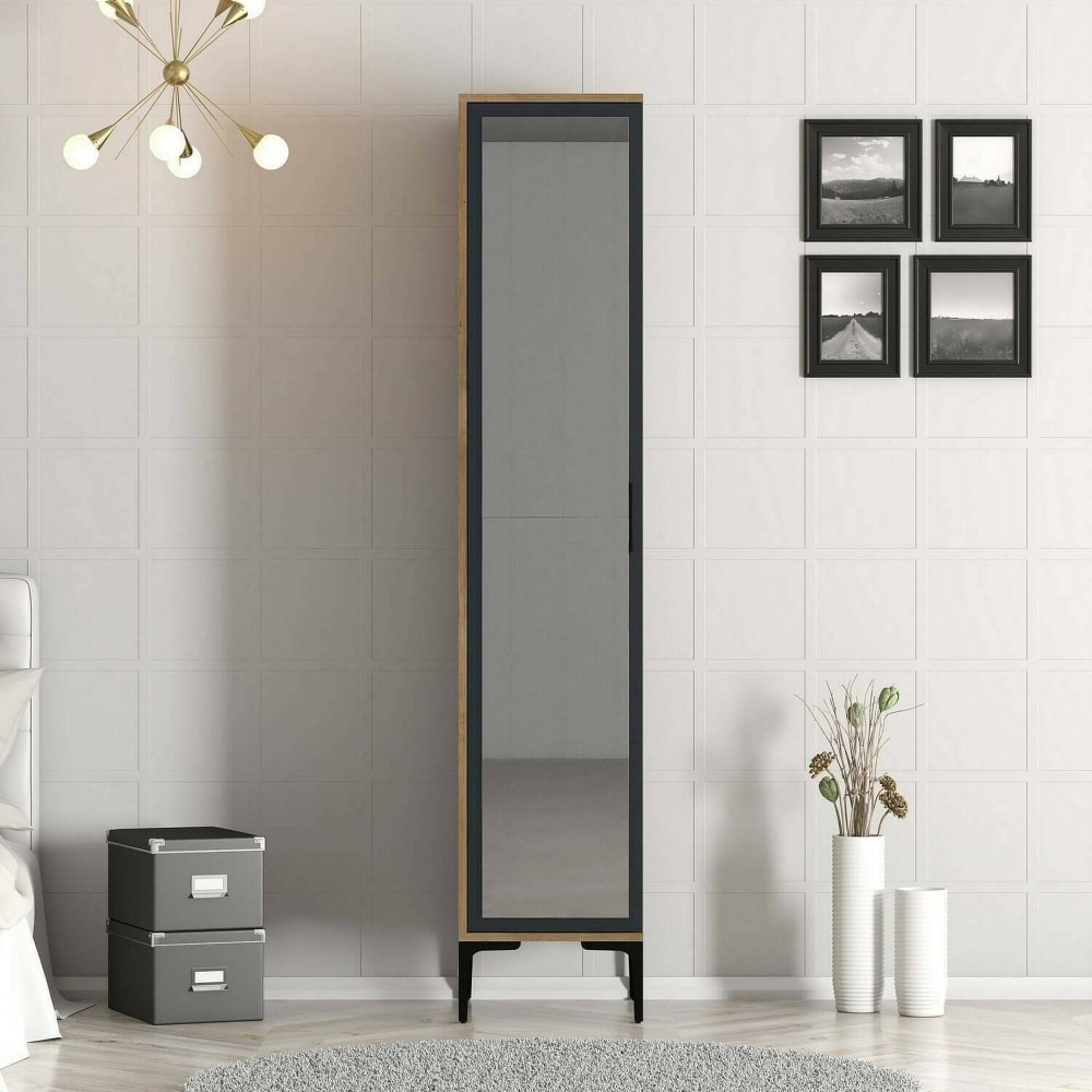 Mehrzweckschrank 1 Tür mit Walnussholzeffekt, Anthrazit 40x201h48 cm von Dmora