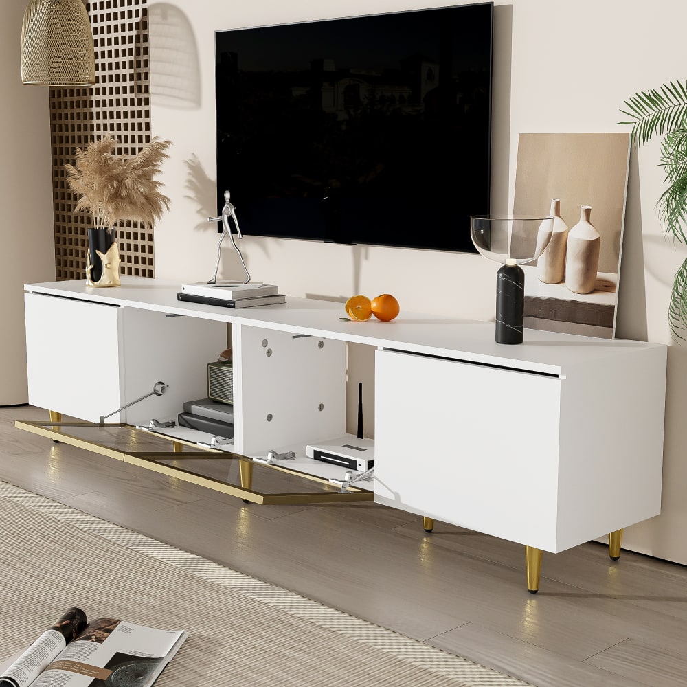 Minimalistischer TV-Schrank mit 4 Türen,Weiß und Gold von Urban Meuble