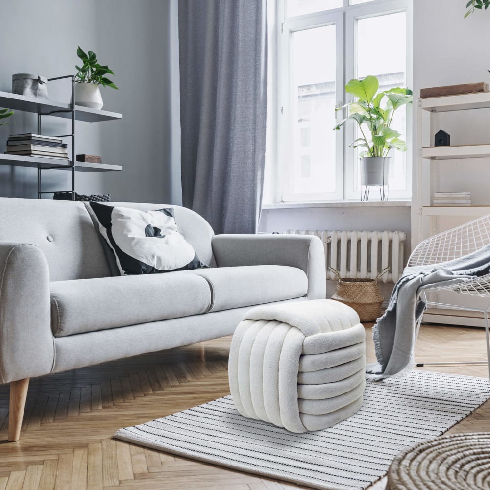 – ELEGANTER KNOTENPOUF: Der Knotenpouf ist ein Möbelstück mit elegantem und originellem Design. Vielseitig und dekorativ, verfügt er über eine weiche Polsterung aus synthetischer Baumwolle für maximalen Komfort.
