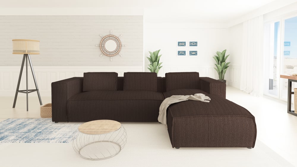 Modernes Ecksofa aus Dunkelbraun Cord-Bezug von S-Style