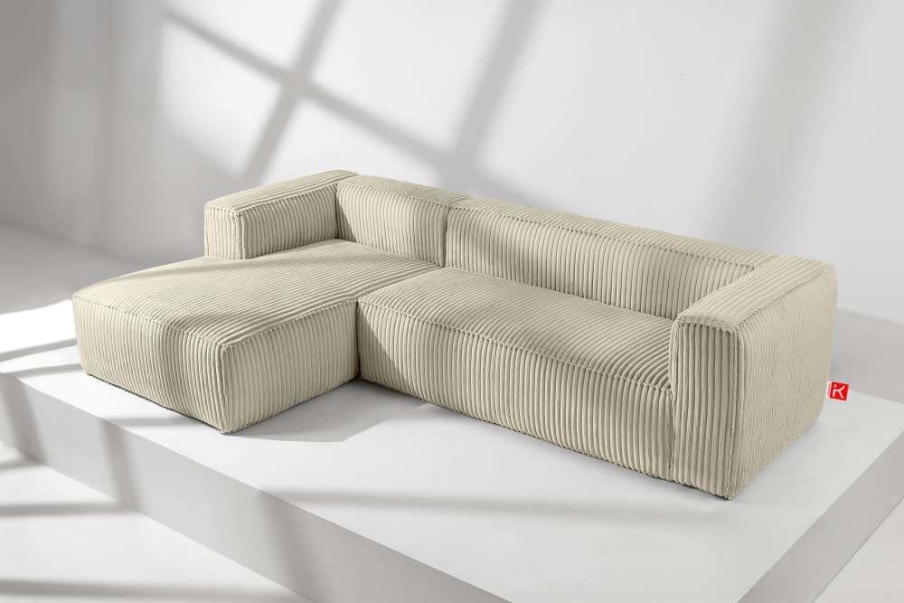 Modernes Ecksofa Links aus breitem Cordstoff, cremefarben von KONSIMO