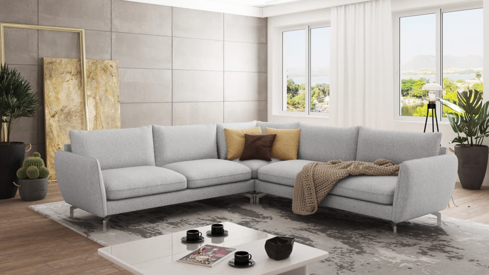 Modernes Ecksofa mit Silber-Füßen aus Mikrofaser-Stoff, Silber von S-Style Möbel