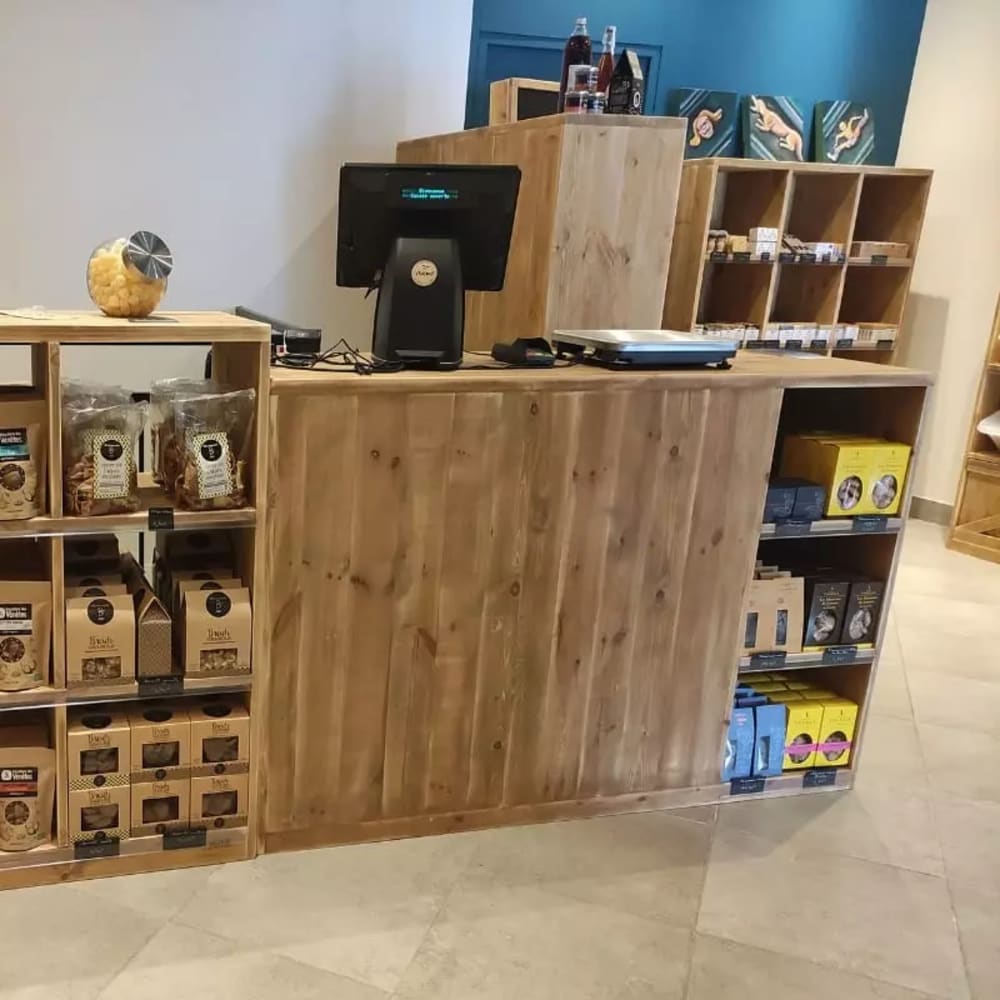 Die vollständig aus Massivholz gefertigte modulare Ecktheke verleiht Ihrem Geschäft Authentizität und ist gleichzeitig sehr funktional.