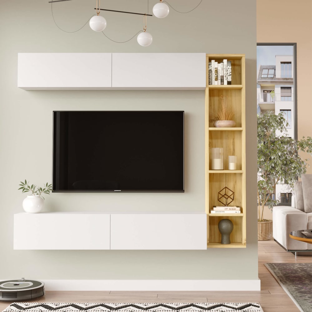 Modulare Wohnwand mit 3 Teilen, 143,5x169x26 cm, weiß und hellbraun von Mobili Rebecca