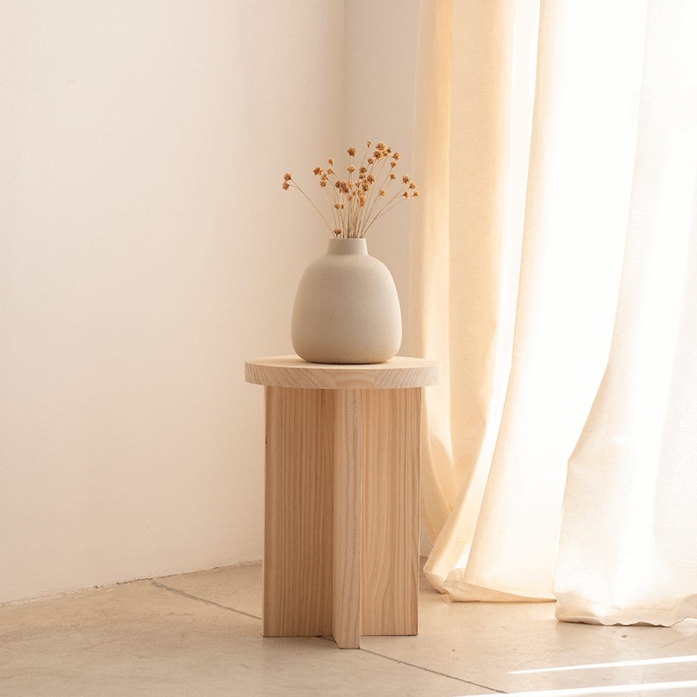 Niedriger Hocker aus Massivholz natur 42 cm Lackiert von Naan Furniture