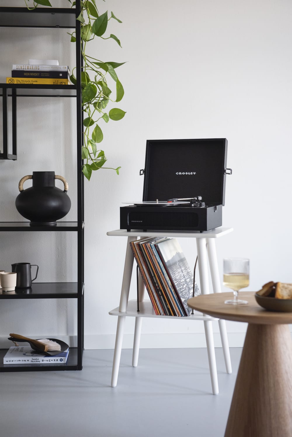 Plattenspielerständer mit Vinyl-Aufbewahrung in Weiß von Crosley