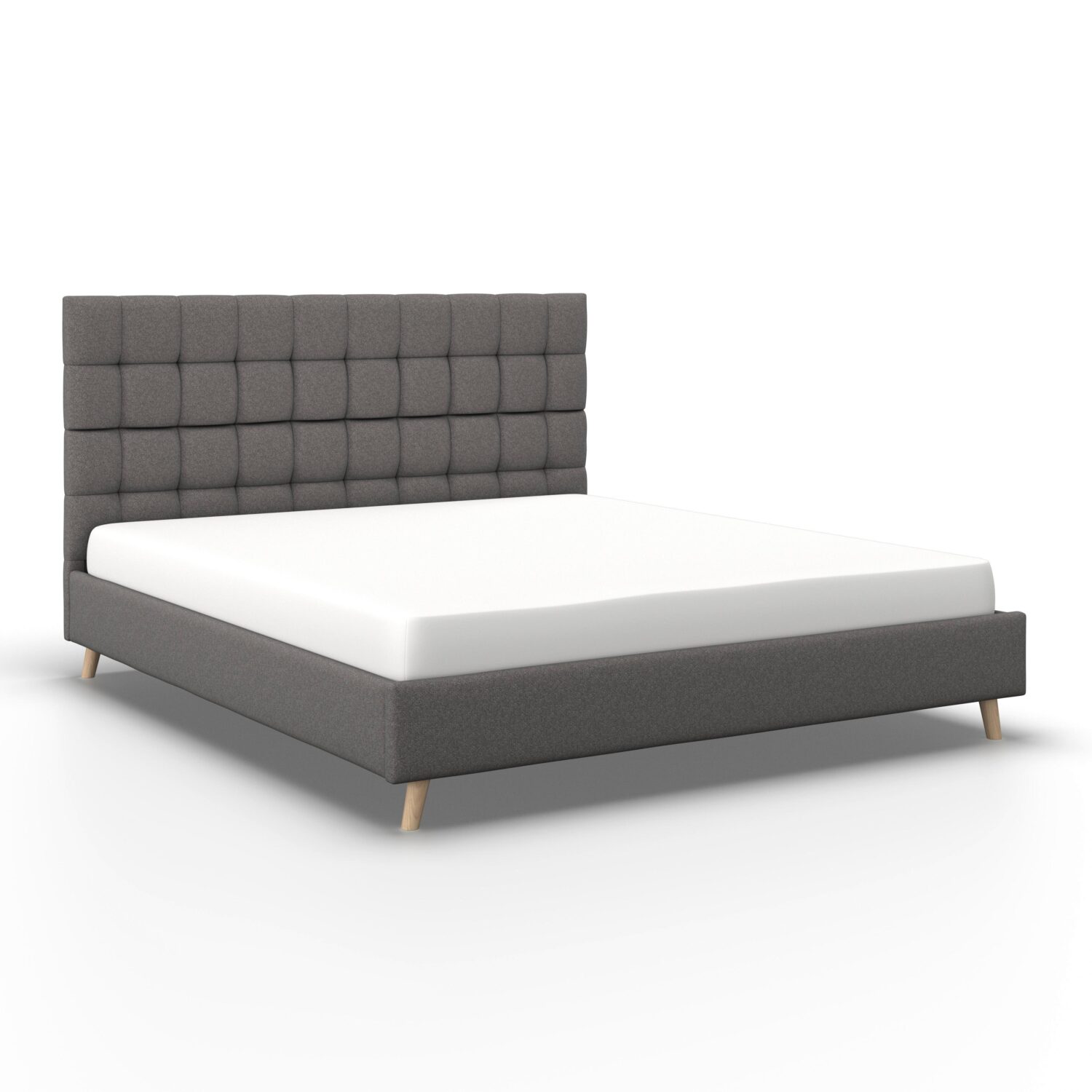 Dieser Artikel ist NUR ONLINE erhältlich! Einfach hinlegen und entspannen – dieses attraktive Polsterbett in Grau bietet Ihnen hervorragenden Liegekomfort und ist ein sicherer Hingucker im Schlafzimmer. Das ca. 187 x 115 x 216,5 cm (B x H x T) große Polsterbett mit einem eleganten Webstoffbezug erhält durch das eckige Kopfteil mit der dekorativen Steppung eine ganz besondere Optik. Konische Beine aus Holz in Hellbraun sorgen für Standfestigkeit und unterstreichen den trendigen Charme. Das Polsterbett wartet mit einer Liegefläche von ca. 180 x 200 cm (B x L) auf und ist mit einem Lattenrost aus Holz-Dekor ausgestattet. Ohne Matratze, Auflagen und Deko. HINWEIS Dieser Artikel wird in unseren Filialen nicht ausgestellt, ist dort jedoch einfach und bequem bestellbar und wird direkt zu Ihnen nach Hause geliefert. Bitte beachten Sie, dass die abgebildete Dekoration im Lieferumfang nicht enthalten ist.
