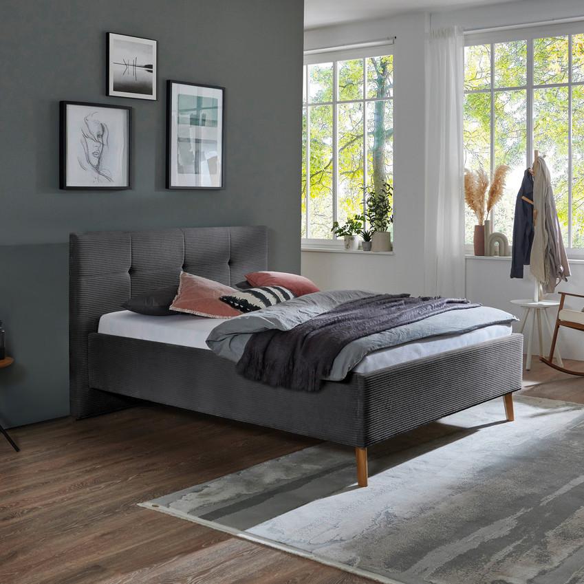 Träumen Sie schön – und zwar stilvoll! Das Polsterbett MEILA von PREMIUM LIVING bringt modernen Chic und pure Gemütlichkeit in Ihr Schlafzimmer. Mit seinem soften Cordbezug in Grau wird es zur perfekten Kuscheloase, die nicht nur optisch überzeugt, sondern auch zum Entspannen einlädt. Hier trifft Komfort auf Charakter. Die Liegefläche von ca. 140 x 200 cm bietet genau das richtige Maß an Platz zum Ausstrecken, Lesen, Faulenzen oder natürlich: Schlafen. Das gepolsterte Kopfteil ist nicht nur ein Hingucker, sondern auch perfekt für gemütliche Abende mit Serien, Snacks und Kissen. Und dank einer Liegehöhe von ca. 50 cm steigen Sie jeden Morgen wie auf Wolken in den Tag. Die massiven Füße aus gebeiztem Eukalyptusholz in Eichefarben sorgen für Stabilität und ein natürliches Finish. Mit einer Bodenfreiheit von ca. 20 cm wirkt MEILA luftig-leicht und bietet Raum für frischen Stil – auch unter dem Bett. Kurz gesagt: MEILA ist Ihr neues Lieblingsstück für stilvolle Nächte mit Kuschel-Garantie. HINWEIS
