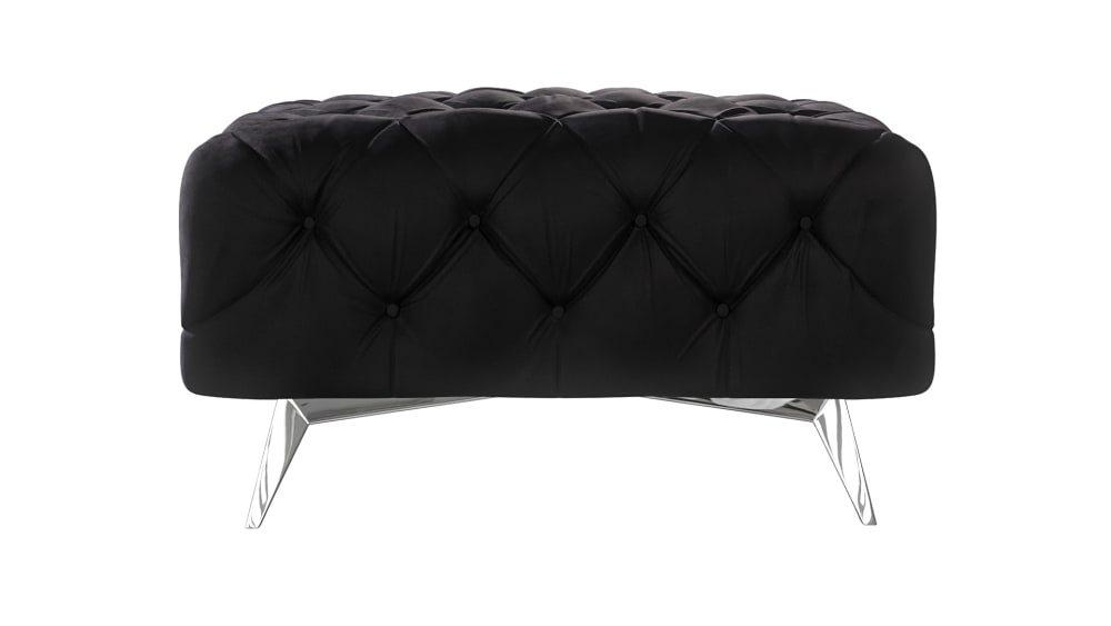 Polsterhocker Chesterfield aus Samt mit Metall-Füßen, Schwarz von S-Style