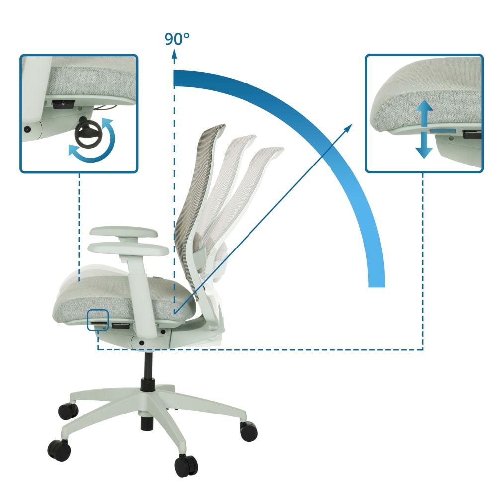 Eckige, ergonomische Rückenlehne mit atmungsaktivem Netzbezug