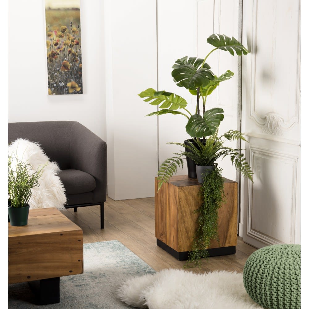 Quadratischer Beistelltisch aus Suar-Holz mit schwarzem Gestell L38 von MACABANE