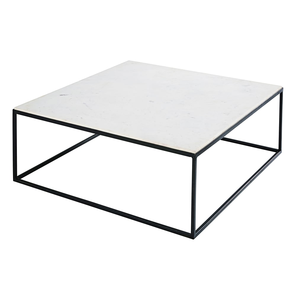 Quadratischer Couchtisch aus weißem Marmor und schwarzem Metall 100 cm von Maisons du Monde