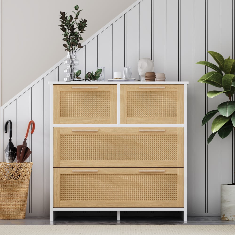 Rattanschrank mit 4 Schubladen und Massivholzgriffen, natur+weiß von Flieks