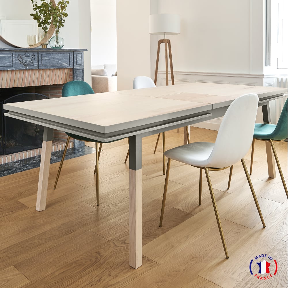 Rechteckiger ausziehbarer Tisch aus massivem Eschenholz 120 cm, grau von MON PETIT MEUBLE FRANCAIS