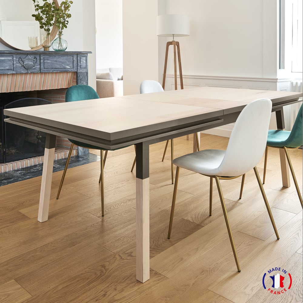 Rechteckiger ausziehbarer Tisch aus massivem Eschenholz 140 cm, grau von MON PETIT MEUBLE FRANCAIS
