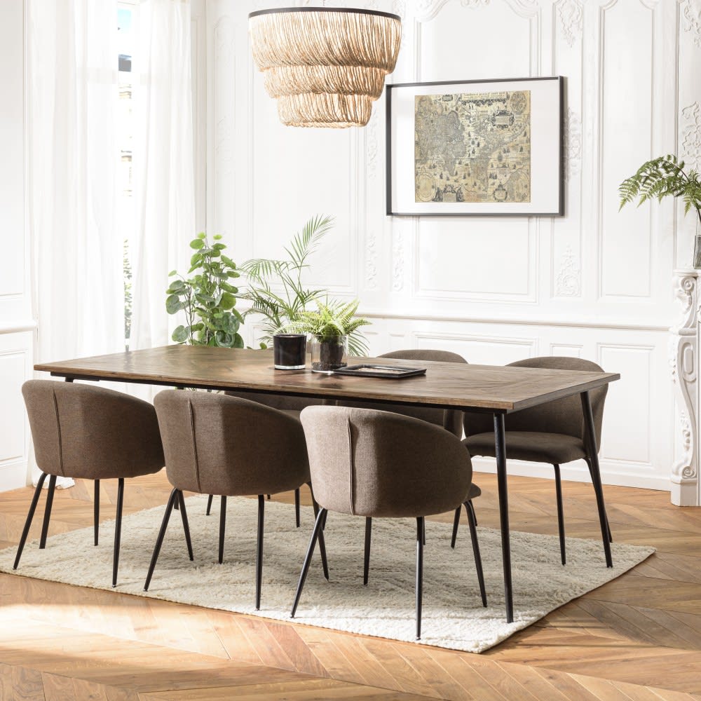 Rechteckiger Esstisch 220x100cm geometrische Formen. Artikel aus recyceltem Holz/Stahl. Größe 220 x 100 x 78 cm. Auf der Suche nach dem perfekten Tisch? Erliegen Sie dem Charme dieses rechteckigen Esstisches mit einer Tischplatte aus Teakholz und Beinen aus Edelstahl. Mit seinen großzügigen Maßen von 220 x 100 cm können Sie Ihre Familie um den Tisch versammeln und gesellige Stunden verbringen.