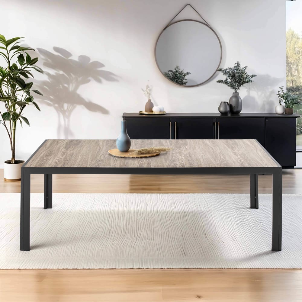 Sie werden den 10-Sitzer-Tisch Tivoli für den Innenbereich zu schätzen wissen: Seine große Kapazität und sein Design mit klaren Linien machen ihn zu einem unverzichtbaren Möbelstück für Liebhaber von zeitgenössischem und praktischem Dekor. Die Rahmen aus 100 % Aluminium ist ebenso robust wie nüchtern und hebt die große Platte hervor. Die Platte besteht aus 10 Keramikplatten mit einer sehr schönen natürlichen Holzoptik in Kombination mit einer leichten und angenehmen Haptik. Beständig entworfen, widersteht die Konstruktion allen möglichen Einflüssen, wie Stößen, Kratzern oder Rost. Die Tischplatte aus Metall und Keramik ist feuchtigkeits- und temperaurbeständig. Sie ist mit einem Schwamm und etwas Wasser ganz einfach zu reinigen. Die Anleitung und die Schrauben für die Montage der Rahmen sind enthalten, die Lamellen werden direkt auf den Rahmen gelegt.Beschreibung des Indoor-Tisches Tivoli:Großer Tisch mit 10 PlätzenMerkmale des Indoor-Tisches Tivoli: Konstruktion aus anthrazitgrauem AluminiumPlatte aus Keramiklatten mit HolzoptikBeständig gegen Stöße, Kratzer und TemperaturschwankungenLeicht zu reinigenAnleitung und Schrauben für die Montage der Füße enthaltenMaße des Indoor-Tisches Tivoli:Länge: 206 cmBreite 100 cmHöhe: 74,5 cmPaket:60 kg