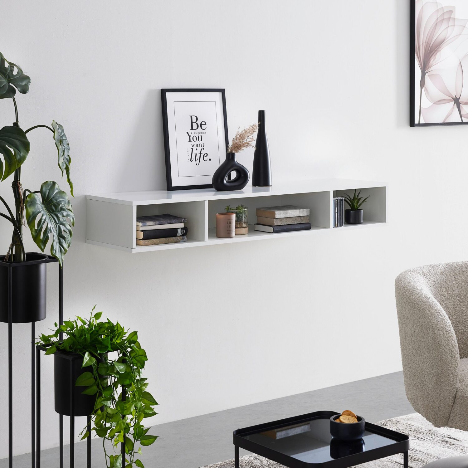 Das Regal LUGO in Weiß bietet stilvollen Stauraum für Ihr Zuhause. Mit Maßen von ca. 135 x 19,2 x 34,4 cm (B x H x T) fügt sich dieses Regal optimal in verschiedene Wohnbereiche ein. Die Oberfläche aus Melamin sorgt für eine pflegeleichte und robuste Beschaffenheit. Das Regal verfügt über drei Fächer mit Breiten von ca. 31,8 cm, ca. 64,8 cm und ca. 31,8 cm. Die maximale Belastbarkeit beträgt ca. 15 kg. Der Korpus ist in Weiß gehalten und ca. 16 mm stark.
