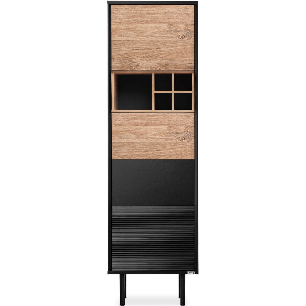 – Produkt entworfen und hergestellt in EU.- Die Möbel haben Vertiefungen und ungleichmäßige Oberflächen, so dass das Massivholz nicht eben ist.- Das Push-to-Open-System verfügt über spezielle Verriegelungen, so dass Sie nur an der richtigen Stelle auf die Tür oder die Schubladen drücken müssen, um sie zu öffnen.- Das Möbel steht auf hohen Beinen aus massivem, lackiertem Holz, die zusätzlich verstellbar sind.- Die Möbel sind aus einer laminierten Platte gefertigt, die keinen Staub anzieht und mit einem Tuch gereinigt werden kann.Die LOFTY-Kollektion ist das Werk angesehener Professoren, die sie so vielseitig und anpassungsfähig wie möglich gestaltet haben. Die Möbel sind mit verschiedenen Arten von Regaleinsätzen ausgestattet, die sich in Form und Farbe unterscheiden. Ebenso wichtig ist die Kombination aus schwarzem Laminat und eichenfarbenem Dekor, die perfekt zusammenpassen. Die Kollektion ist nicht nur für den rohen Industriestil, sondern auch für den wärmeren Loft-Stil geeignet. Der Loft RTV-Schrank in Eiche natur/schwarz ist in erster Linie ein Möbelstück für Nutzer, die Wert auf Details und hochwertige Verarbeitung legen. Er bietet Platz für viele praktische Dinge wie Dokumente, Fernsehgeräte oder andere wichtige Dinge. Die gesamte Kollektion besteht aus drei Arten von Kommoden, zwei Arten von Bücherregalen, Vitrinen und RTV-Schränken.A) Das Push-to-Open-Schließsystem verfügt über spezielle Verriegelungen, so dass Sie einfach an der entsprechenden Stelle auf die Tür oder die Schubladen drücken, um sie zu öffnen. B) Die Türen sind mit in drei Ebenen verstellbaren Scharnieren versehen. C) Das Möbelstück hat Vertiefungen und ungleichmäßige Oberflächen, so dass das Material nicht eben ist. SKU:12607.40.883